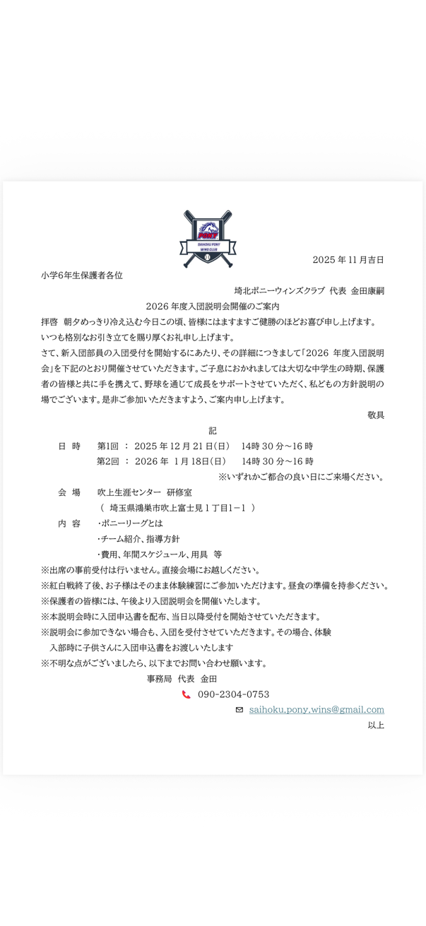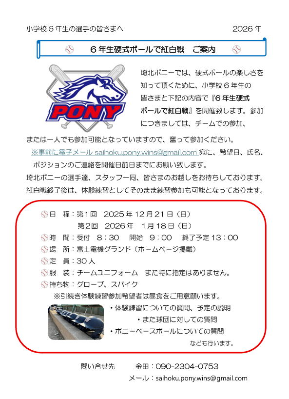 硬式ボール体験紅白戦と合わせて、ぜひご参加ください。